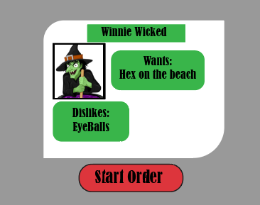 After clicking play, this menu pops up with orders for you to do, each with its own dislikes, and some will even have preferences on ingredients because us bartenders love when customers tell us how to make cocktails; however, make it wrong and you will have to start from the start and might even get a little scare.