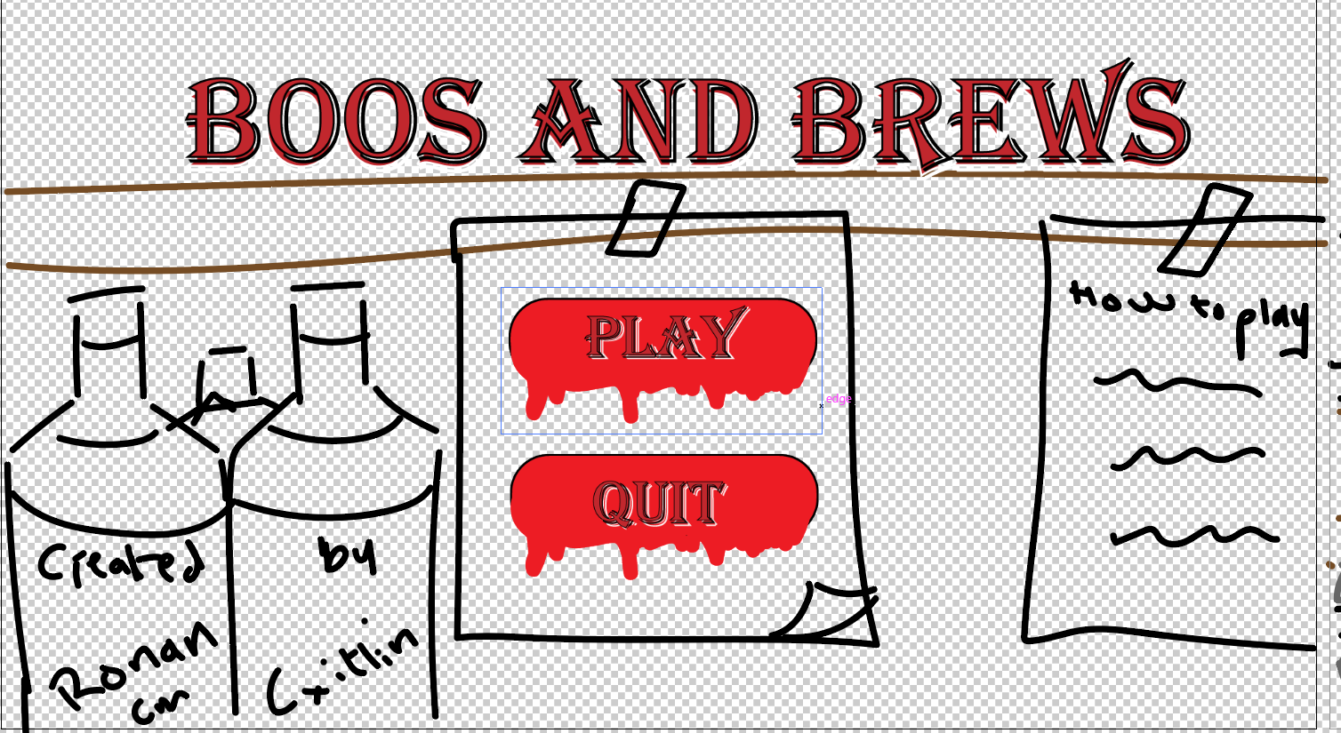 This week I spent all my time on the home screen. We had this bland, grey placeholder, but I wanted to change it, so I started sketching out different ideas until I came up with this one below. I liked how it shows orders, bottles and blood, so it gives the game away, but doesn't at the same time. I believe they all tie nicely together.